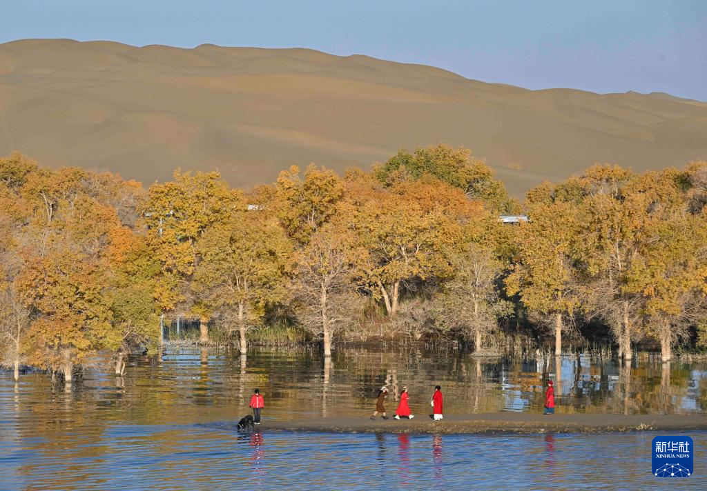 这是葫芦岛景区内胡杨林和沙山(10月26日摄)。
