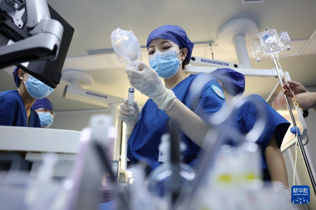 10月29日,甘肃省第二人民医院呼吸与危重症医学科主管护师康晓倩(前)在手术中。