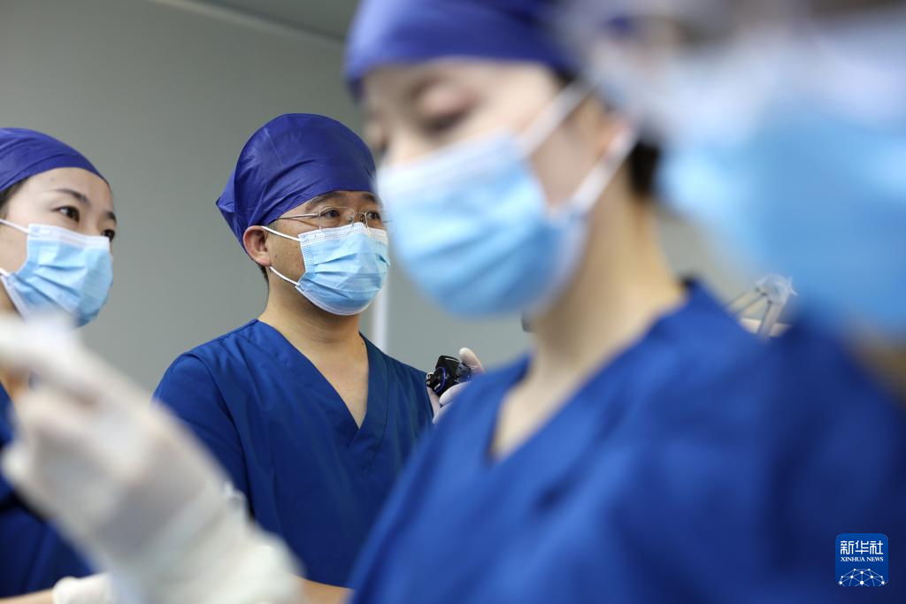10月29日,甘肃省第二人民医院呼吸与危重症医学科主任柳小平(右一)在手术室为患者进行手术。
