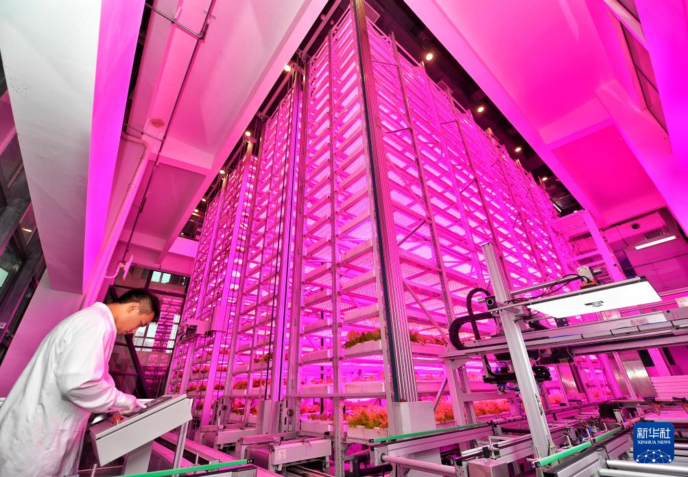 在位于四川天府新区的中国农业科学院都市农业研究所超高层无人化垂直植物工厂内,科技人员在调试软件(10月16日摄)。