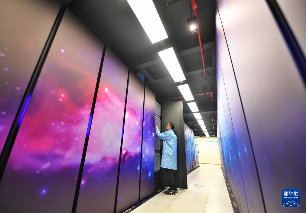 在位于四川天府新区的国家超级计算成都中心内,科研人员在巡检机房设备(2023年2月14日摄)。