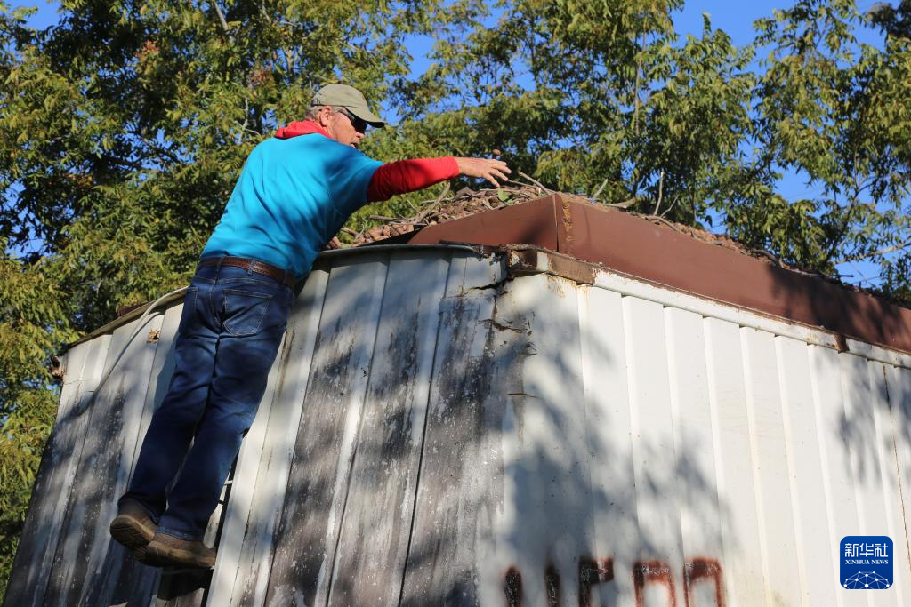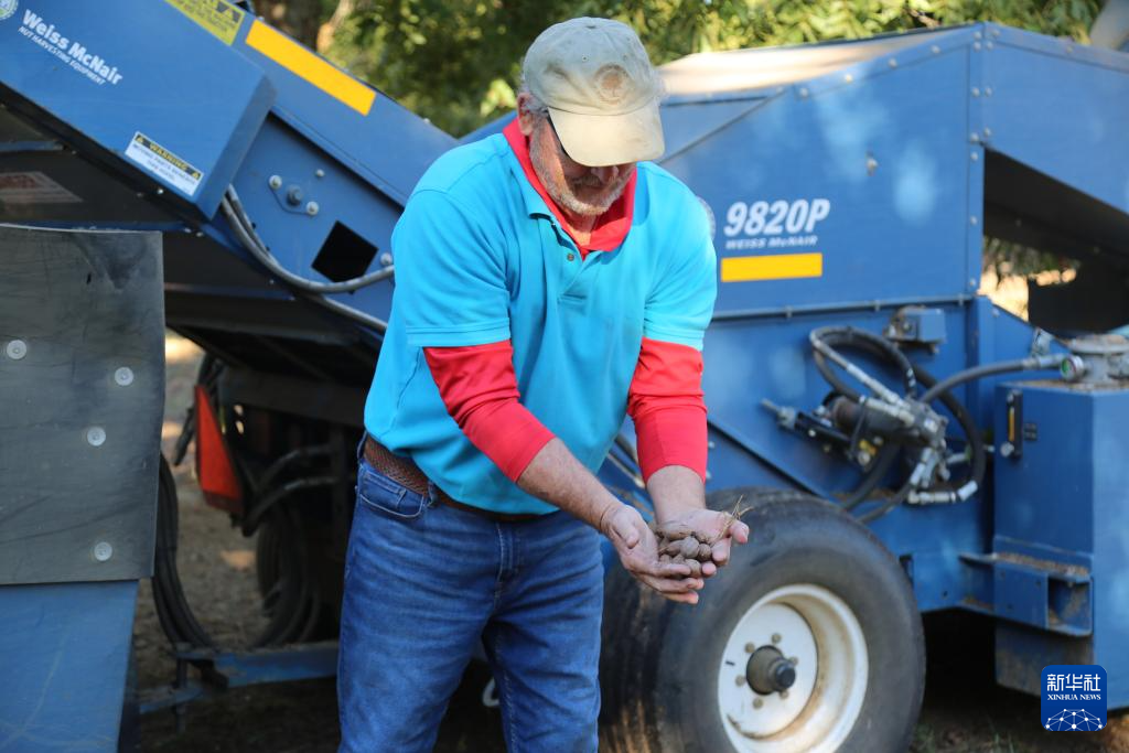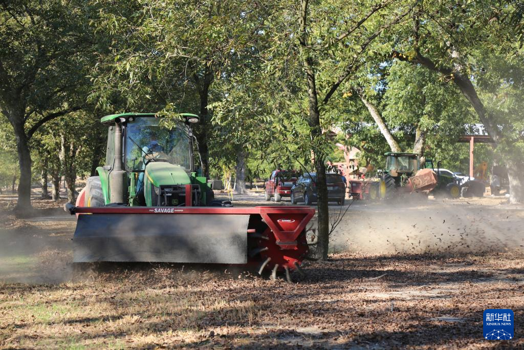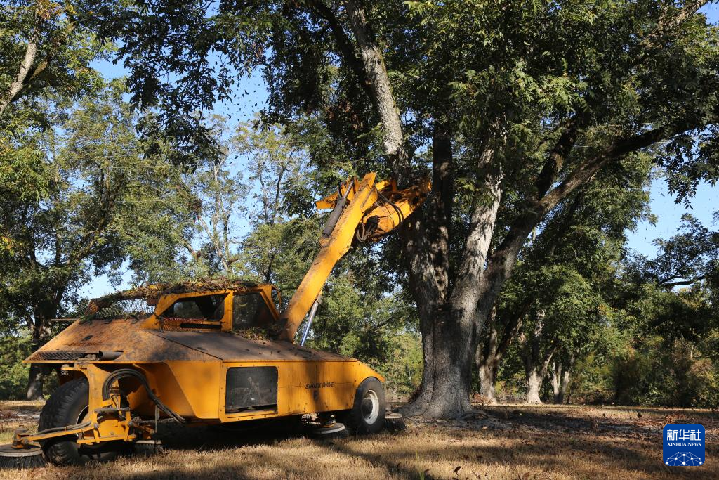 10月25日,在美国佐治亚州罗谢尔,工作人员驾驶农机收获山核桃。