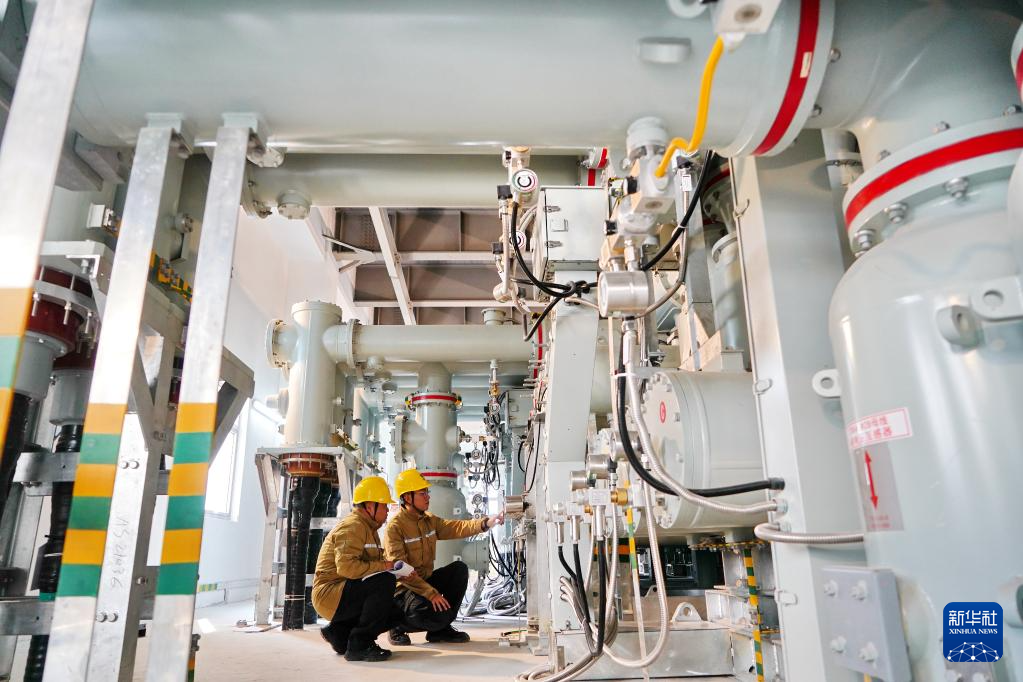 10月29日,国网雄安新区供电公司运维检修中心工作人员在王阳变电站主变室内巡检。
