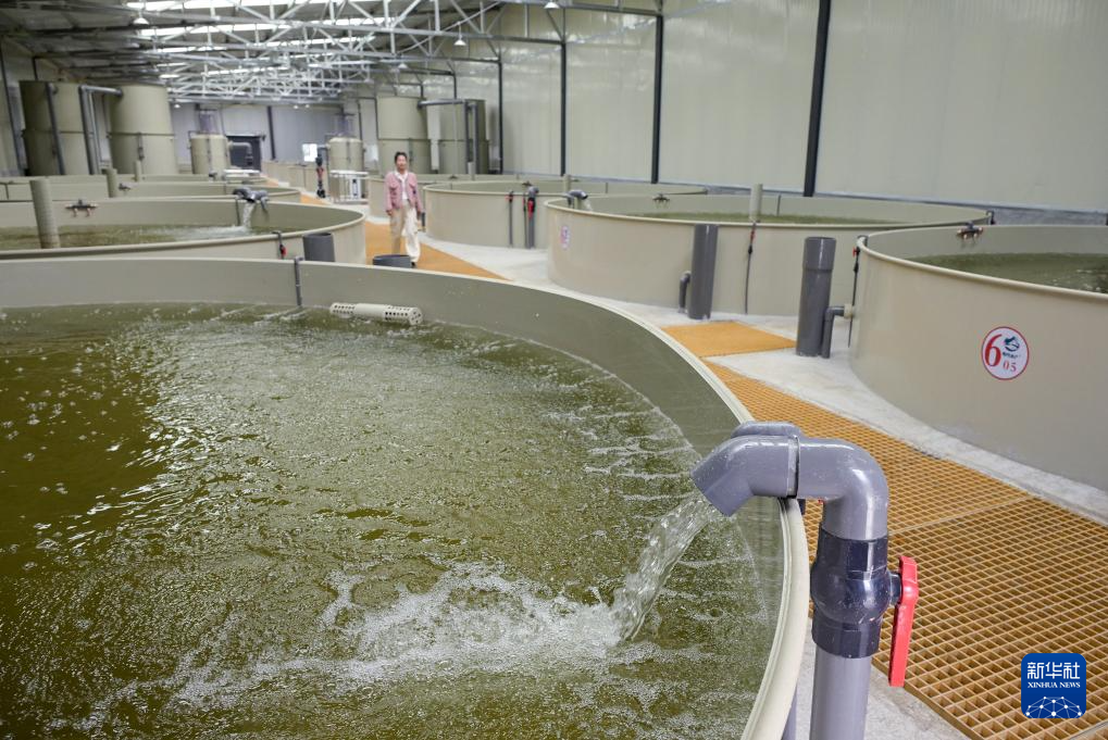 这是在西藏林芝市米林农场的粤林高原渔业科技园育苗厂房内拍摄的育苗水池(10月24日摄)。