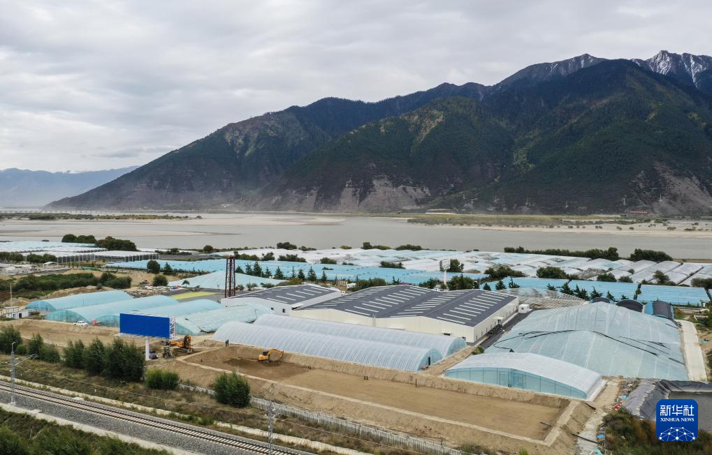 在西藏林芝市米林农场内的粤林高原渔业科技园,依托当地有利环境而兴建的养殖育种基地初显规模(无人机照片,10月24日摄)。