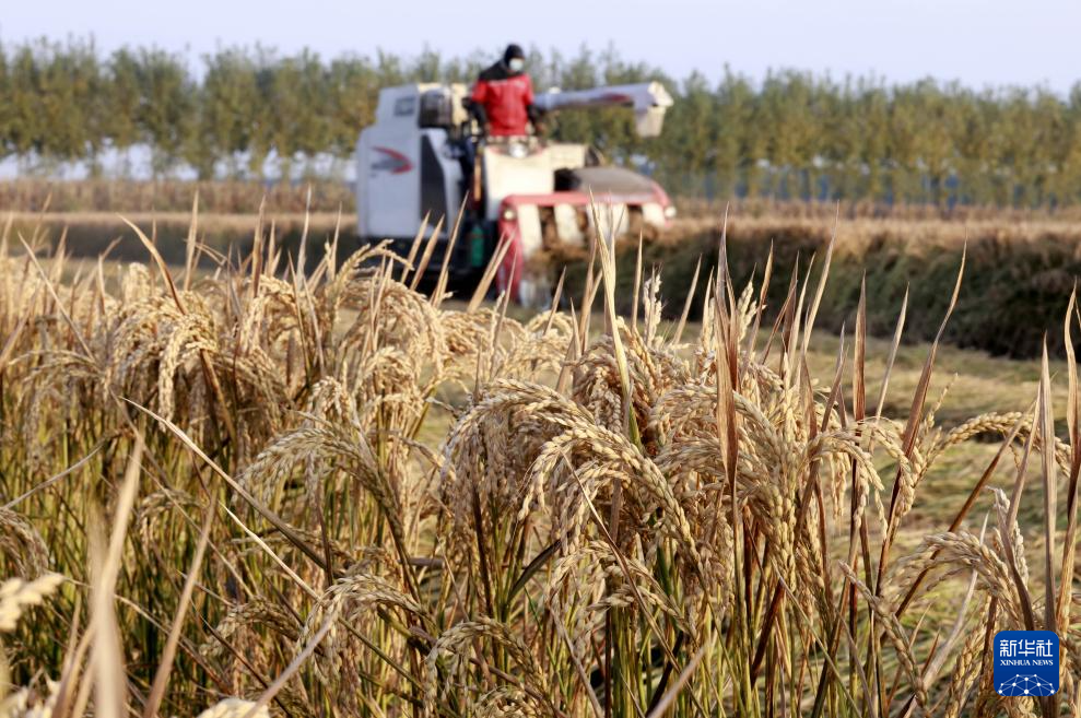 近日,河北省唐山市的水稻迎来收获季节,农民抢抓农时,确保颗粒归仓。