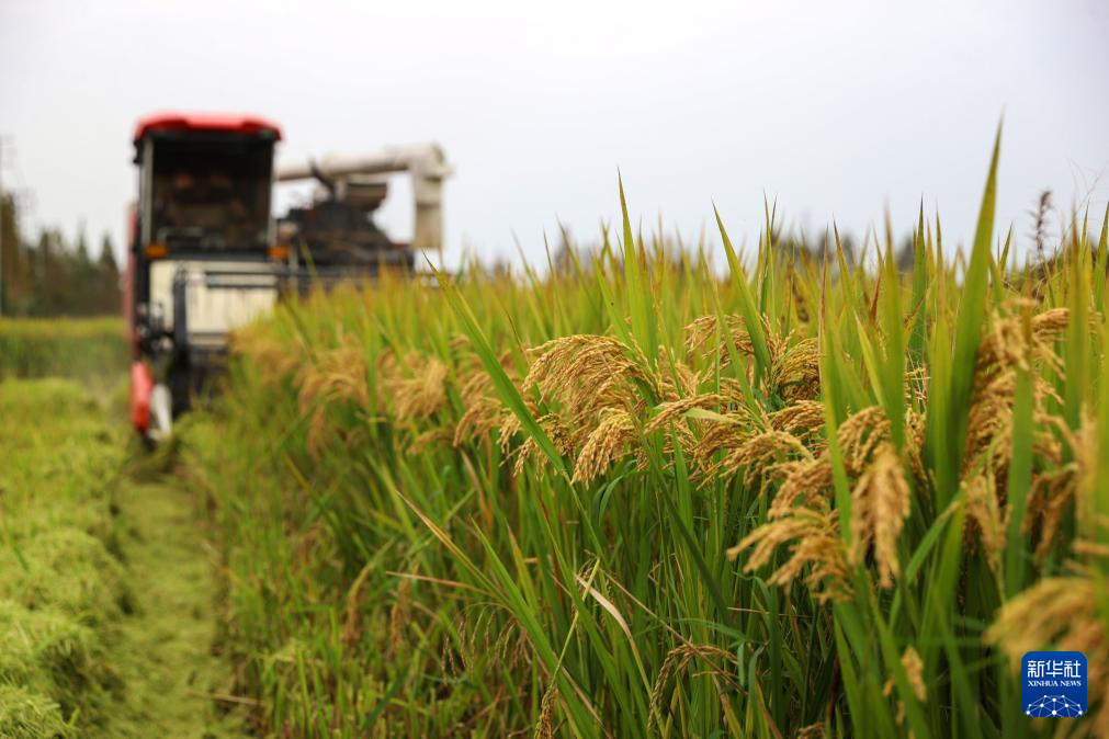 10月30日,在湖南省永州市道县祥霖铺镇常青村,农机手驾驶收割机收割晚稻。