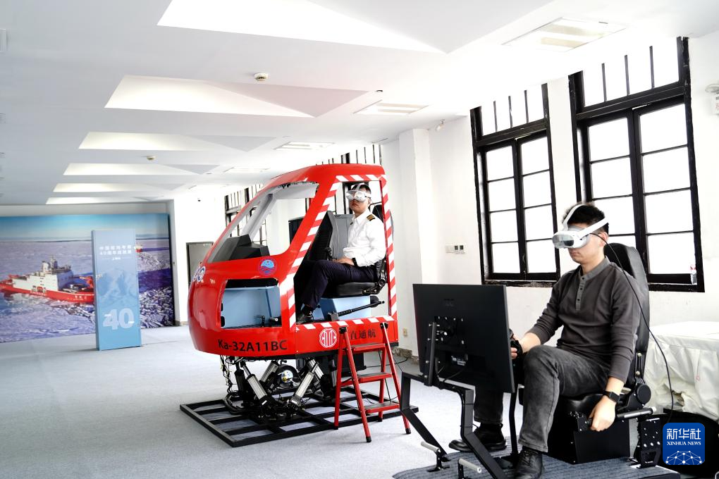 10月30日在中国极地考察40周成就展上拍摄的海直通航直升机极地任务训练模拟机。