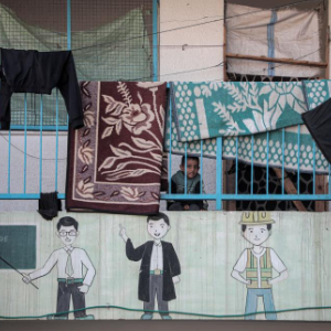 这是10月29日在加沙地带汗尤尼斯拍摄的一处联合国近东巴勒斯坦难民救济和工程处开设的避难所。