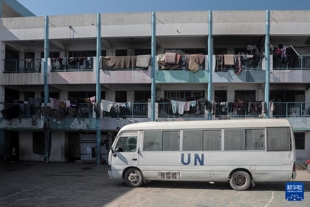 这是10月29日在加沙地带汗尤尼斯拍摄的一辆联合国机构的车辆。