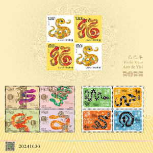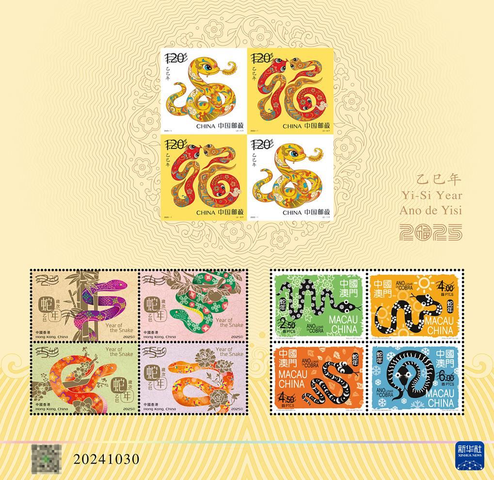 10月30日,中国邮政《乙巳年》特种邮票图稿发布仪式在北京举行。发布仪式上公布了《乙巳年》特种邮票即蛇年生肖邮票图稿并揭幕中国邮政携手港、澳邮政部门共同印制的《乙巳年》生肖同题材三地小全张。