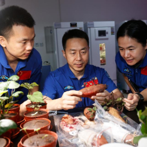神舟十九号航天员乘组进行植物培养训练(2024年8月27日摄)。
