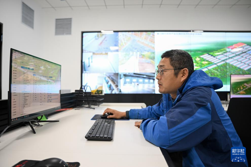 10月29日,在内蒙古巴彦淖尔市临河区富川现代肉羊产业科技示范园区智慧指挥中心,工作人员远程控制投料机器人。