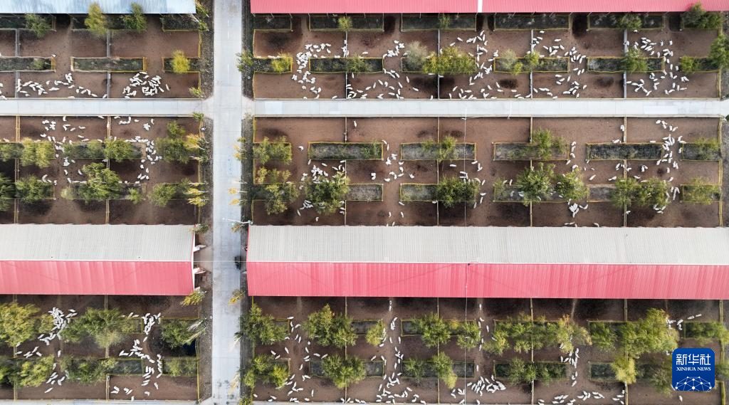 10月29日拍摄的内蒙古巴彦淖尔市临河区富川现代肉羊产业科技示范园区羊舍(无人机照片)。