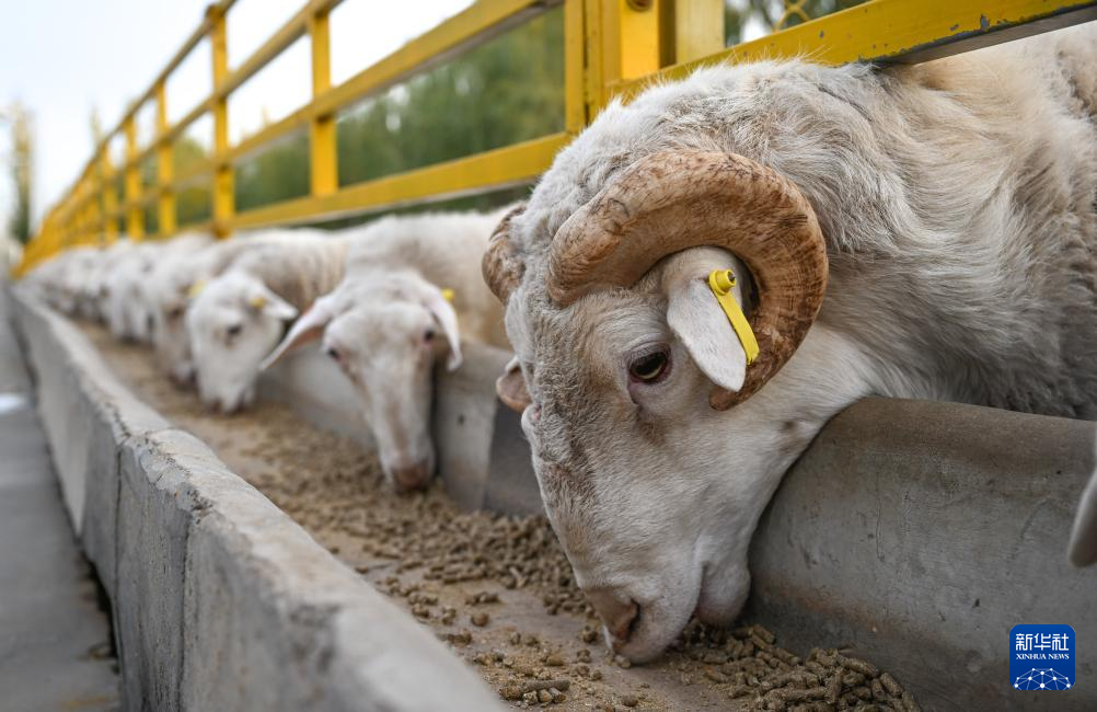 10月29日在内蒙古巴彦淖尔市临河区富川现代肉羊产业科技示范园区内拍摄的肉羊。