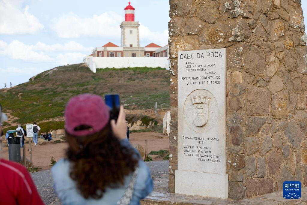 10月30日,游人在葡萄牙罗卡角拍摄纪念碑。