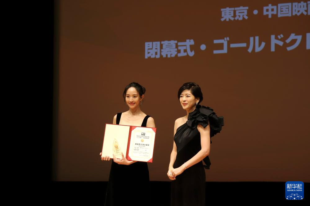 10月29日,在日本首都东京,演员张钧甯(左)凭借影片《默杀》获得“金鹤奖”最佳女主角奖。