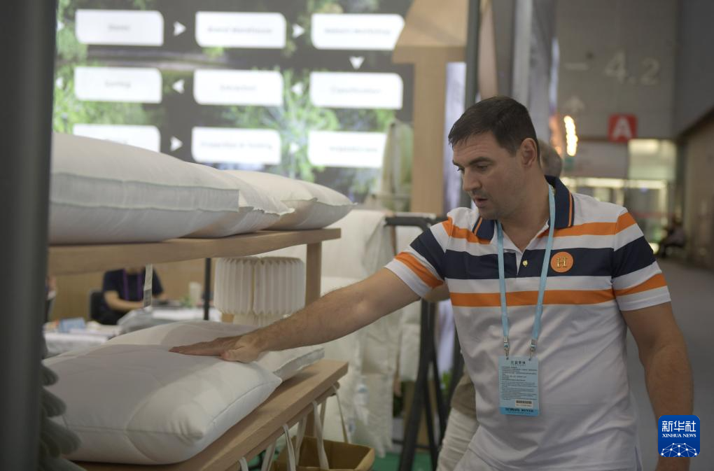 10月31日,客商在广交会上参观选购床上用品。