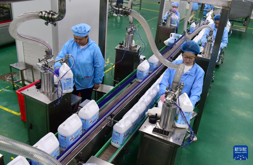 10月31日,工人在河南省鹤壁市宝山经开区一家日用化工企业工作。