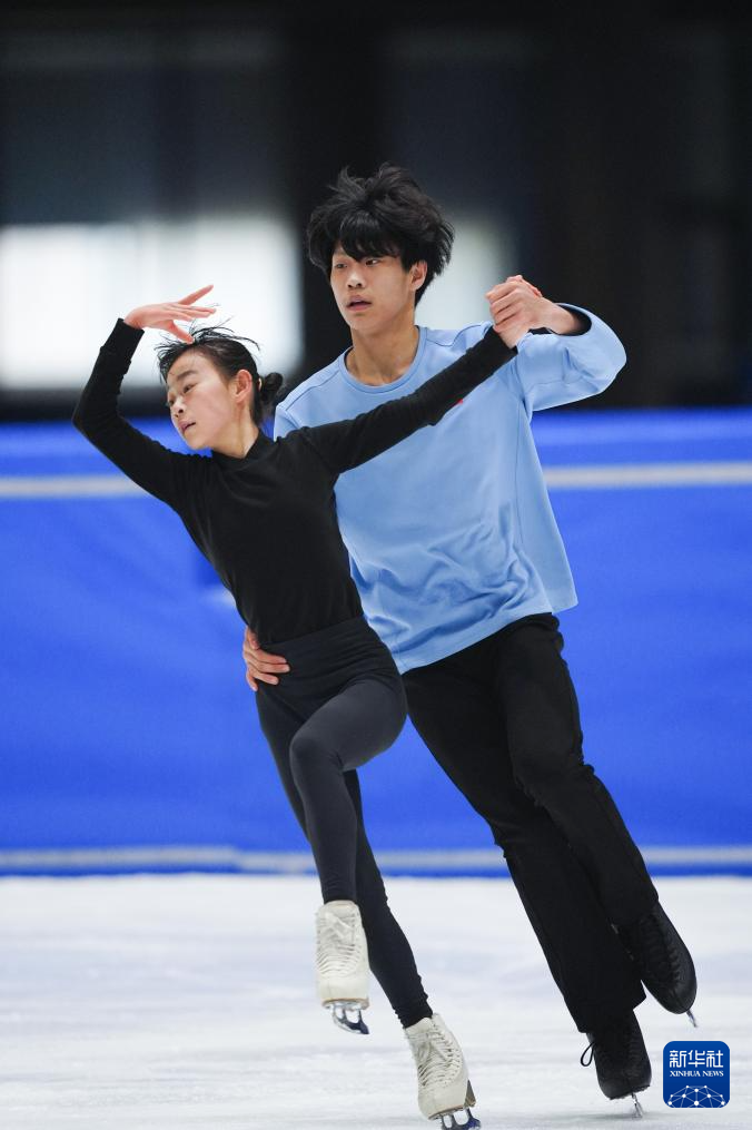 11月1日,青年双人滑组合张轩绮(左)和丰闻强在训练中。