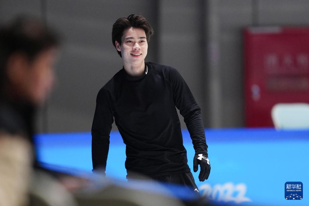 11月1日,男子单人滑运动员戴大卫在训练间隙。