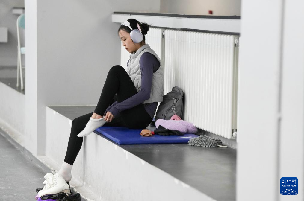 11月1日,女子单人滑运动员安香怡在训练前扎头发。