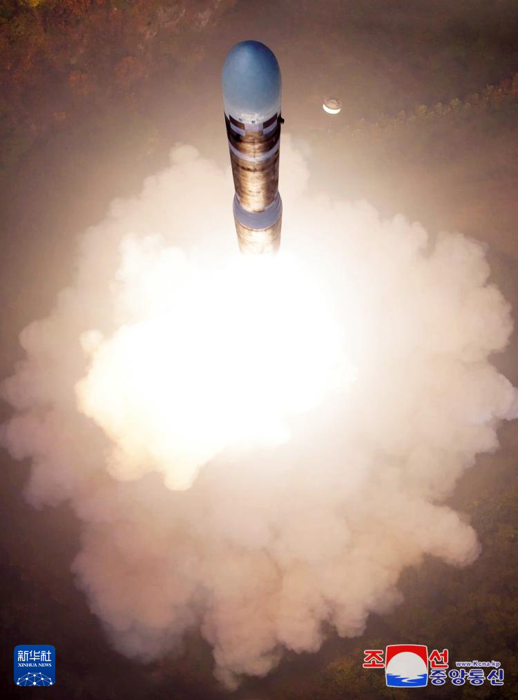 这是朝中社发布的最新型洲际弹道导弹点火升空的图片。