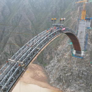 洮河大桥位于甘肃省临夏州永靖县与东乡县洮河峡谷区,是兰合铁路全线重难点工程,桥梁全长430.5米,主桥为跨径220米的上承式劲性骨架钢筋混凝土拱桥。