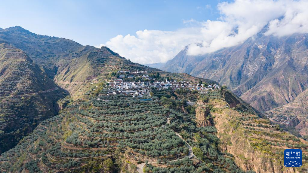 这是在陇南市武都区桔柑镇贺家坪村拍摄的一处油橄榄基地(无人机照片,11月1日摄)。