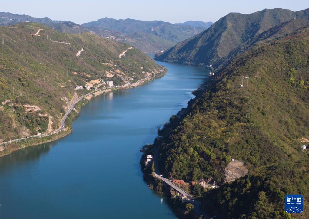 白河县汉江出陕断面附近的景色(2024年10月22日摄,无人机照片)。