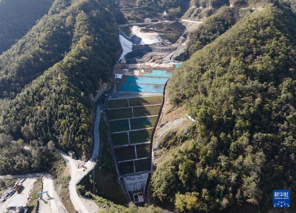白河县卡子镇桂花村运行中的废石贮存场,贮存完毕后将整体复绿(2024年10月22日摄,无人机照片)。