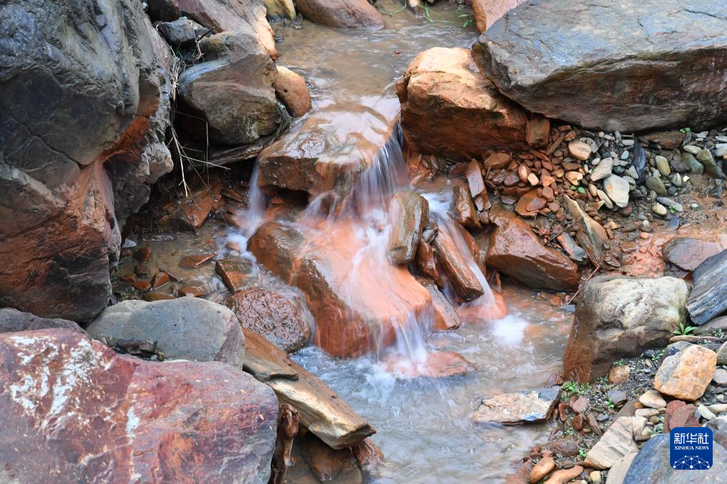 白河县卡子镇里端沟流淌的经过处理后的溪水(2024年10月21日摄)。