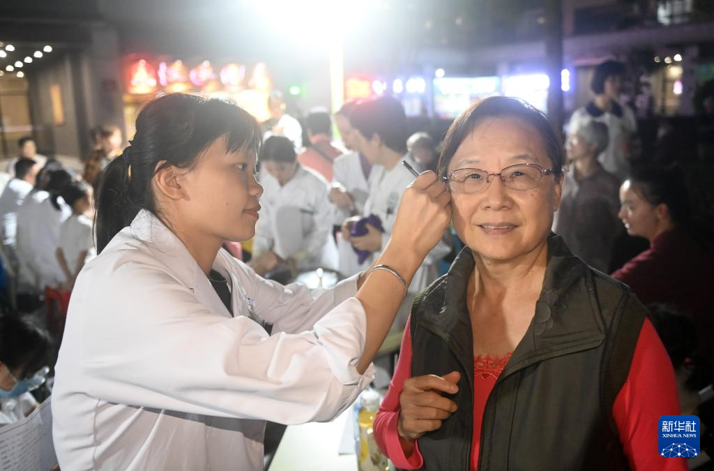 11月1日,广西骨伤医院、广西妇幼保健院和南宁市青秀区长虹社区卫生服务中心组织医务人员,来到南宁市长虹路万科城居民小区开展“中医药夜市”义诊活动,提供中医养生茶饮品尝、中药知识普及、中医传统疗法体验、中医健康咨询等服务,推动中医药文化走进社区,守护居民健康。