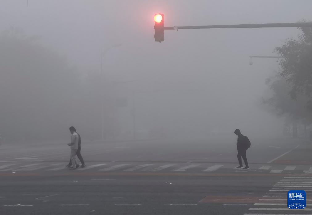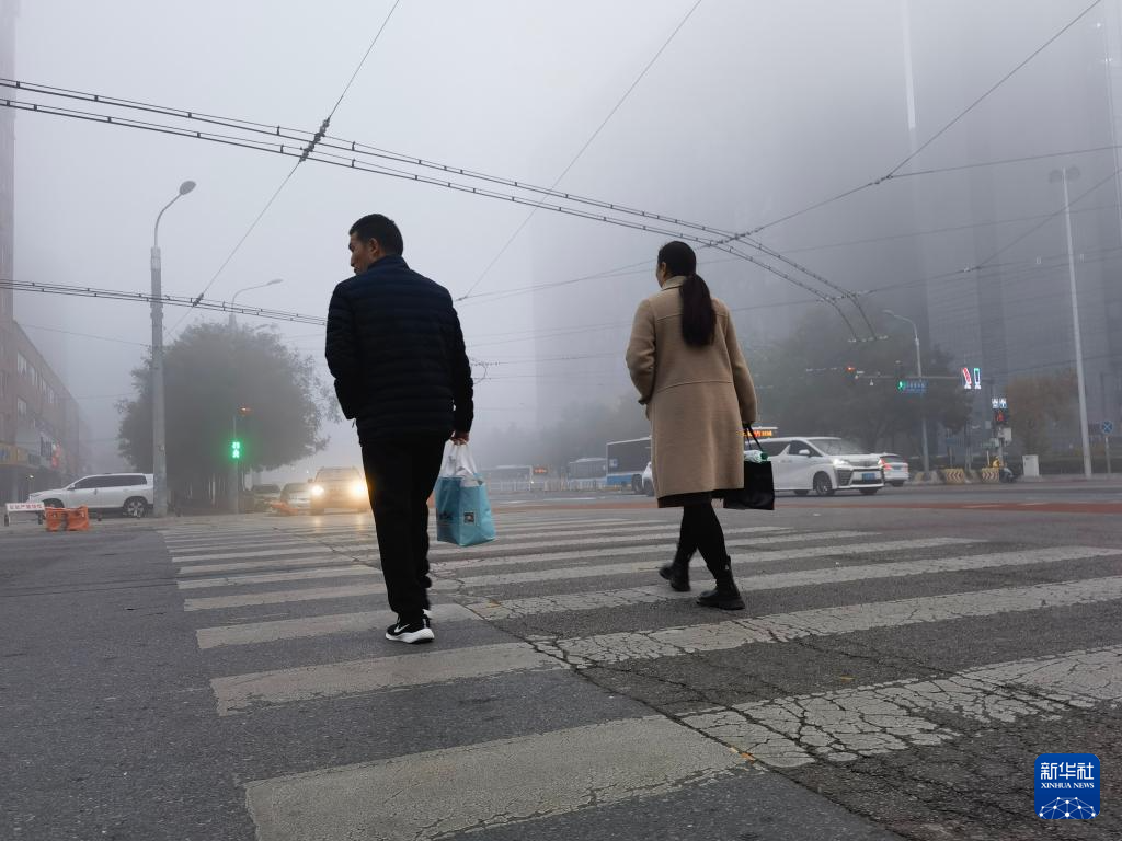 11月2日拍摄的大雾笼罩中的北京市朝阳区一处小区。