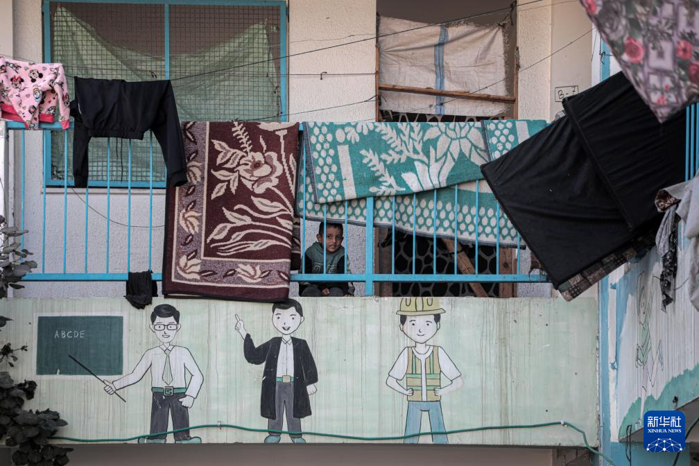 这是10月29日在加沙地带汗尤尼斯拍摄的一处联合国近东巴勒斯坦难民救济和工程处开设的避难所。