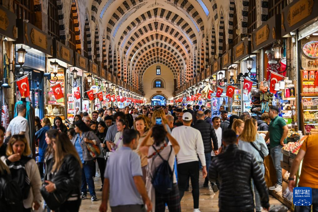 10月31日,在土耳其伊斯坦布尔,游客在香料市场选购商品。