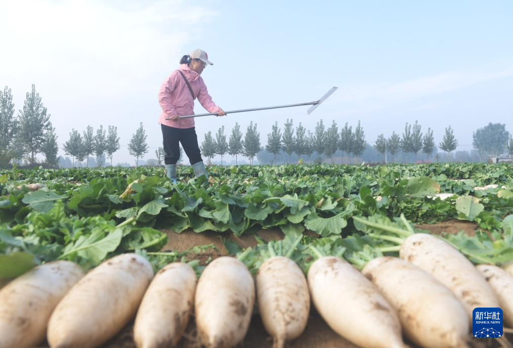 11月3日,河北省石家庄新乐市正莫镇正莫村农民在收获白萝卜。