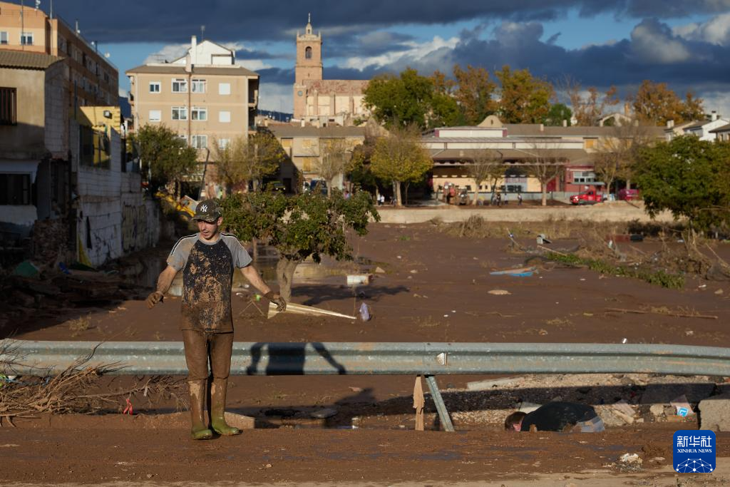 11月2日,居民在西班牙乌铁尔清理房屋。