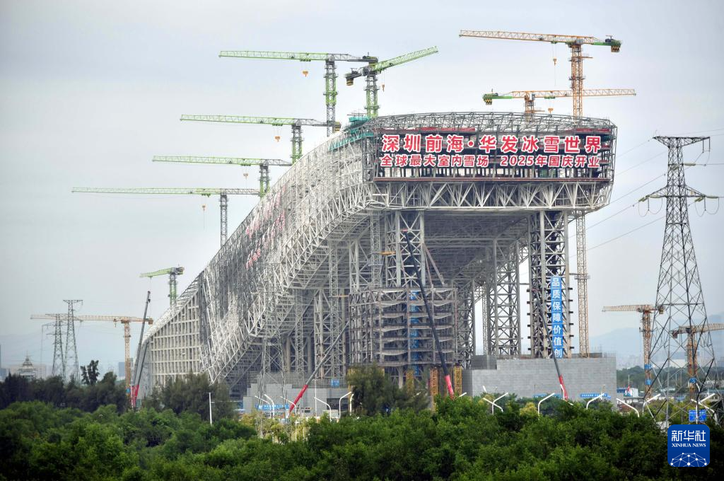 由中建三局承建的深圳前海华发冰雪世界项目,目前主体结构全面封顶,已进入装饰装修阶段。该项目总建筑面积约33.93万平方米,其中雪场部分系粤港澳大湾区最大室内滑雪场,将于2025年建成对外开放。