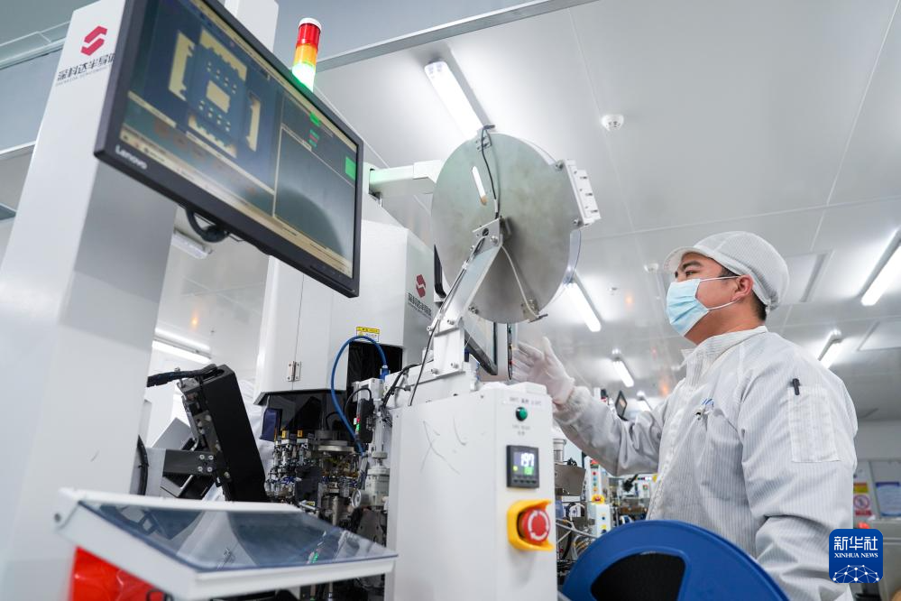 在位于江苏南通如东经济开发区的南通宁芯微电子有限公司,工作人员在生产车间内作业(11月2日摄)。