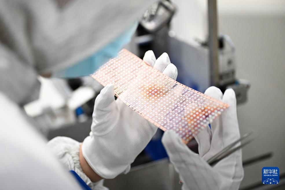 在位于江苏南通如东经济开发区的南通宁芯微电子有限公司,工作人员在装片焊线车间内作业(11月2日摄)。