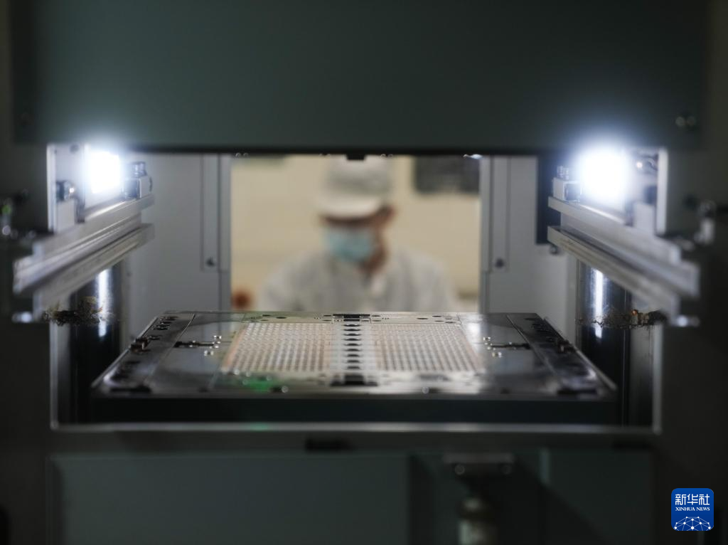 在位于江苏南通如东经济开发区的南通宁芯微电子有限公司,工作人员在测试车间内作业(11月2日摄)。