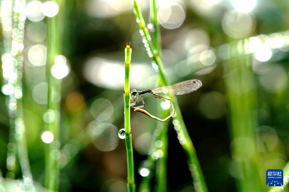 这是11月3日在上海市松江区砖新河畔拍摄的晨露。