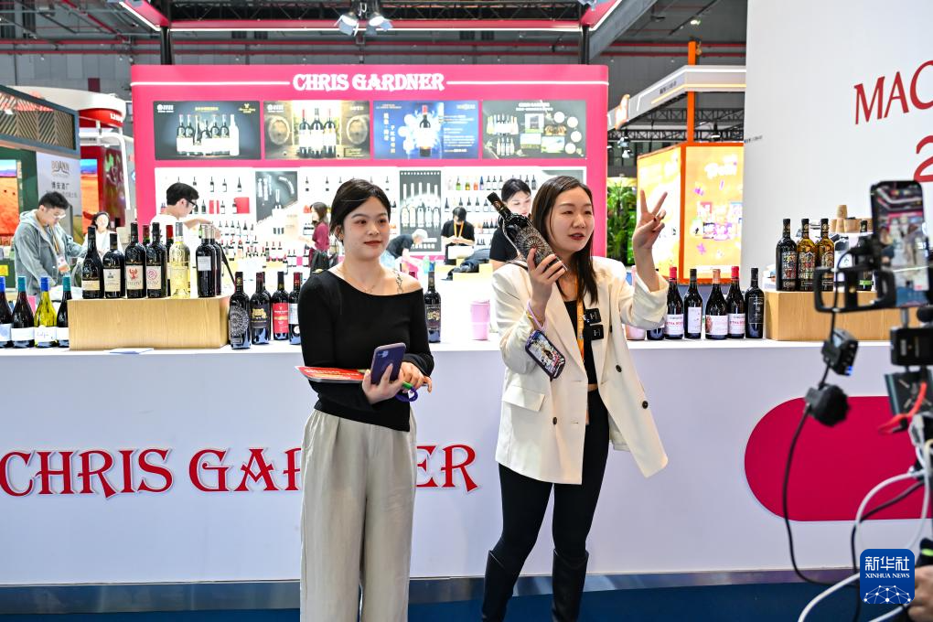 11月5日,工作人员在第七届进博会食品及农产品展区克里斯加德纳展台直播带货。