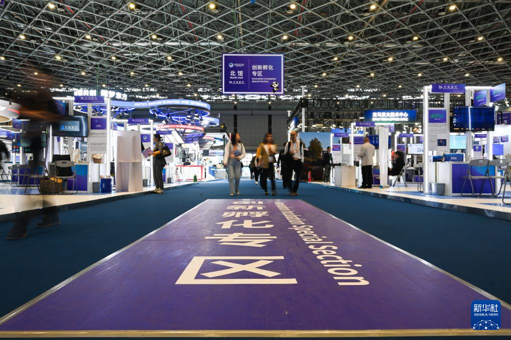 这是11月5日拍摄的第七届进博会创新孵化专区现场。