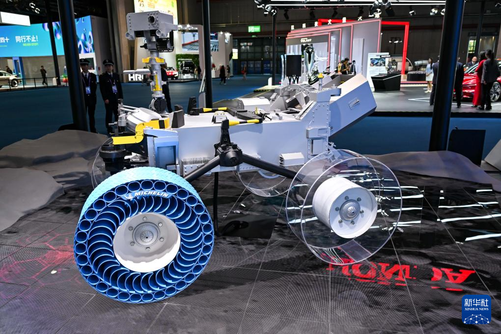 11月5日在第七届进博会汽车展区拍摄的米其林月球探测车轮胎。