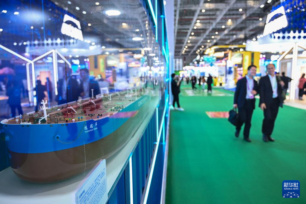 11月5日在第七届进博会服务贸易展区拍摄的中国远洋海运集团有限公司展台。