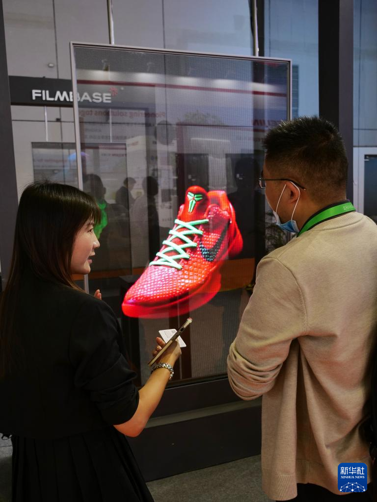 11月5日,参会者在第七届进博会技术装备展区了解透明显示器。