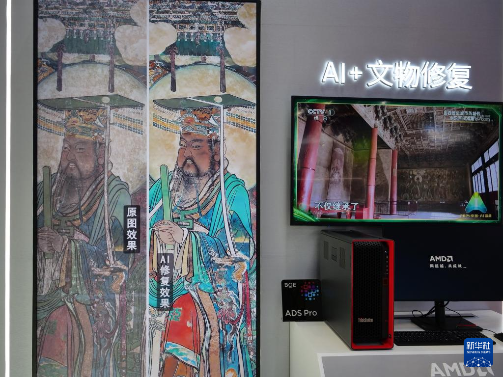 11月5日在第七届进博会技术装备展区AMD展台拍摄的“AI+文物修复”技术展示。
