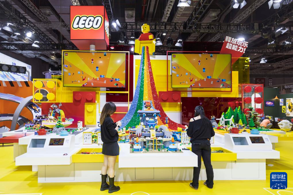 11月5日在第七届进博会消费品展区乐高集团展台拍摄的主题装置。